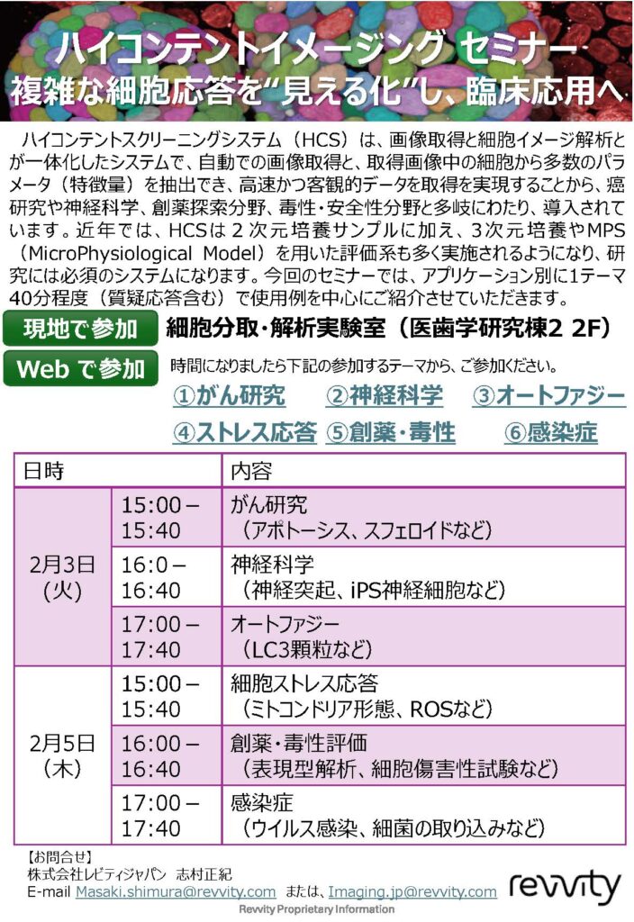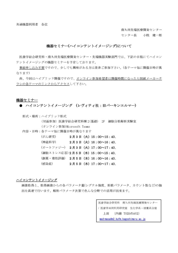 ホーム » イベント等 » 機器セミナー(ハイコンテントイメージング)のお知らせ